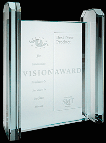 1995 - Surface Mount International San Jose, California - Smart Sonic wins the Vision Award* for "Best New Cleaning Product". The Smart Sonic Stencil Cleaning Process replaces hazardous solvents with an environmental and user safe aqueous detergent (440-R SMT Detergent) that cleans all types of solder paste at ambient temperature. |